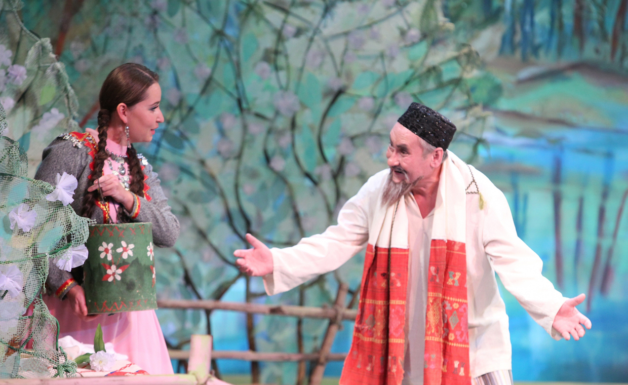 Появляется мулла Мухаметша, следом — Ильяс с друзьями ведут невесту, спрятанную под богатым покрывалом. Яппар с нетерпением откидывает его и видит перед собой… свою жену Махмузу. Он удивлен и смущен, начинает оправдываться и отказываться от свадьбы. Махмуза накидывается на муженька-гулену и на беспутную Шамсию.