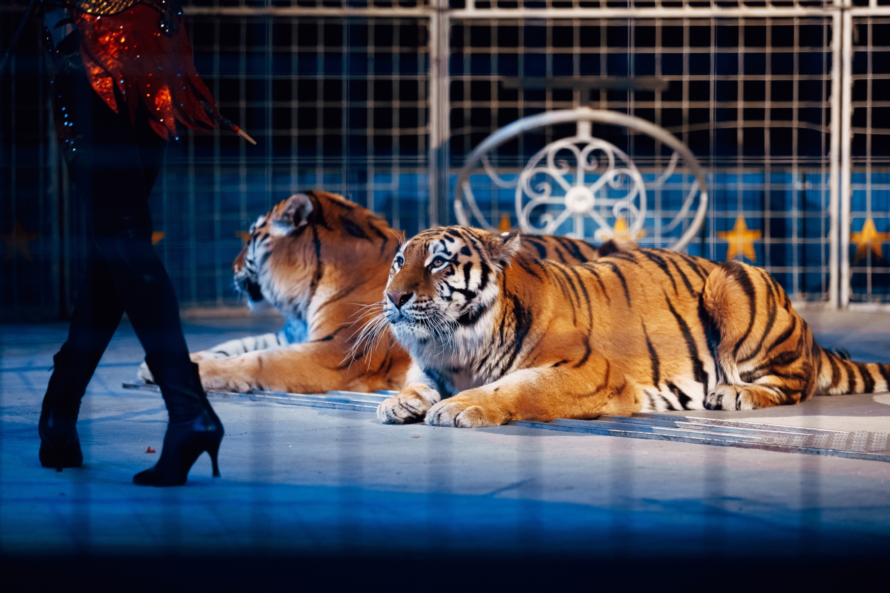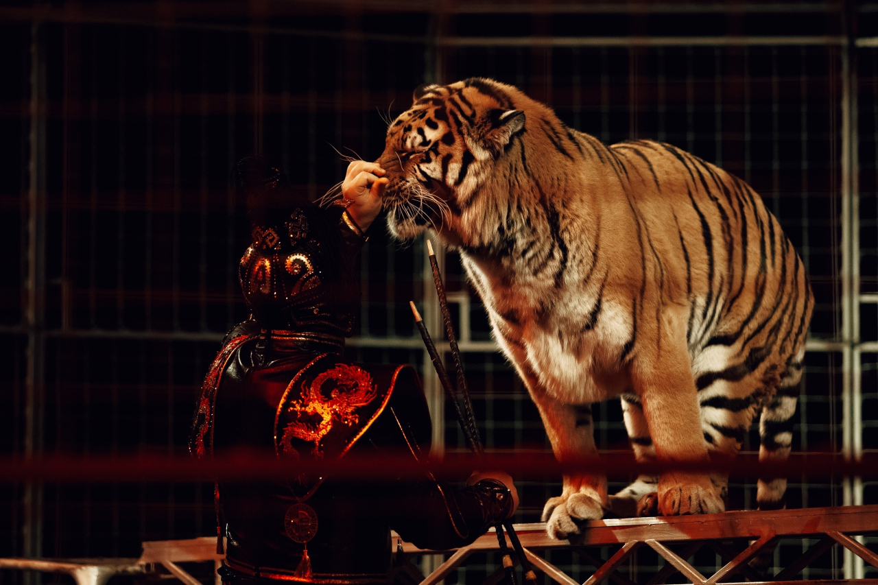 — Большой аттракцион бенгальских тигров во главе с африканским львом под руководством Натальи и Юрия Ковалевых;